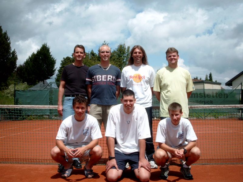 v.l.: vorne: Hannes Meyer, Steffen Geisler, Jörg Meyer; hinten: Ralf Kaluza, Bernd Schrenk, Klaus Weishaupt, Thomas Schuster 2002 Herren